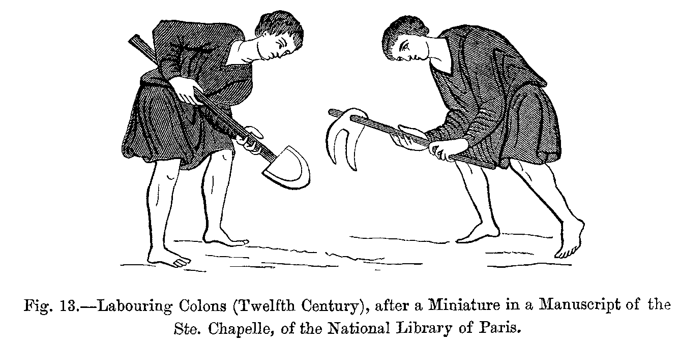 Fig. 417.--Costumes of the Common People in the Fourteenth Century: Italian Gardener and Woodman.--From two Engravings in the Bonnart Collection.