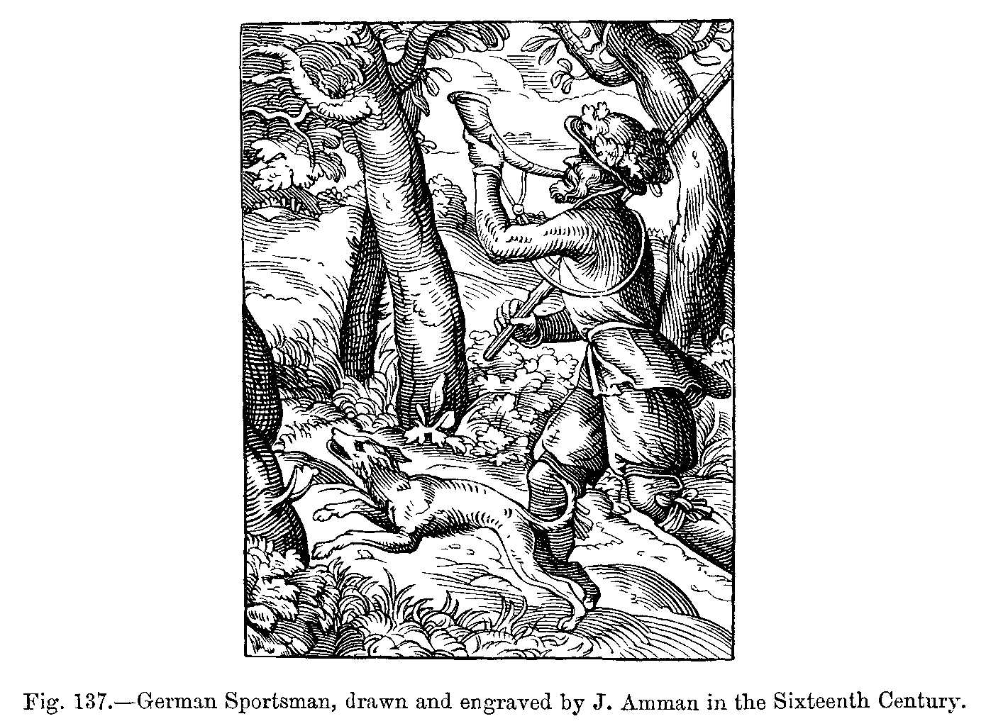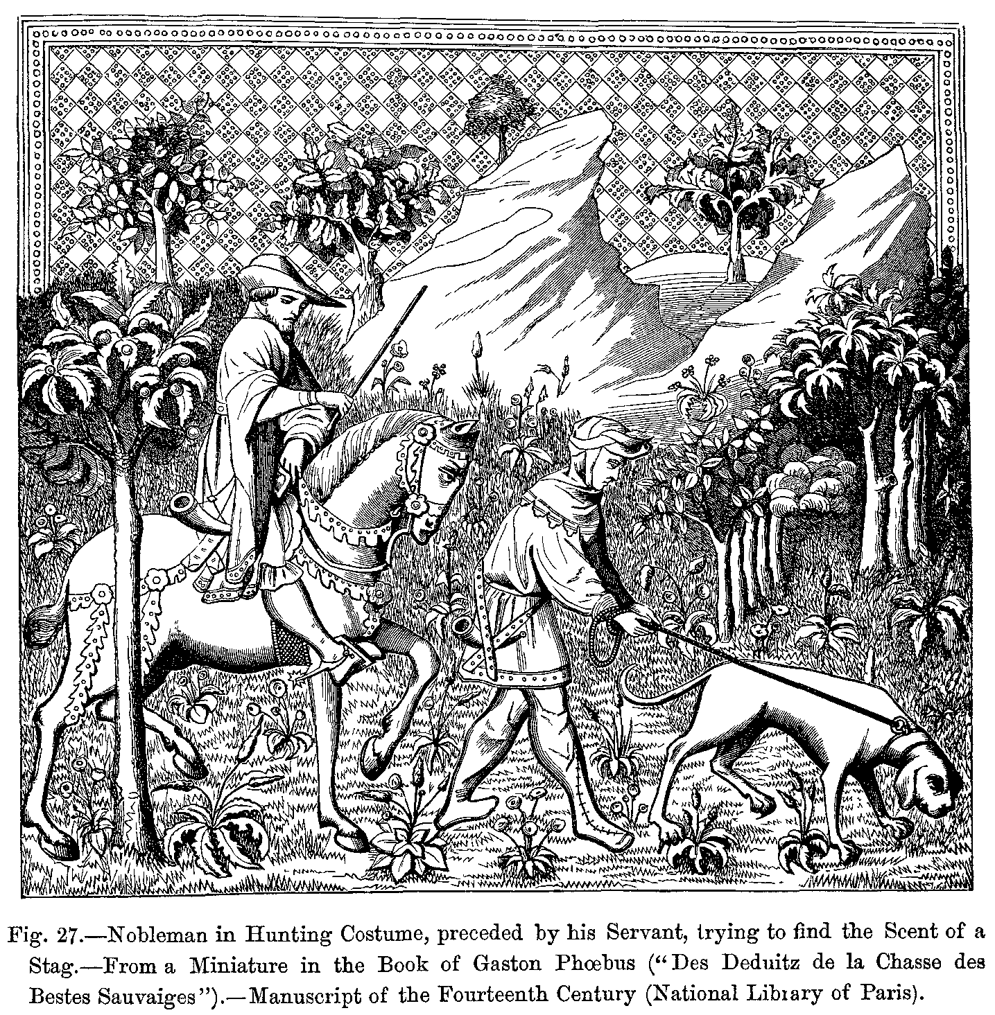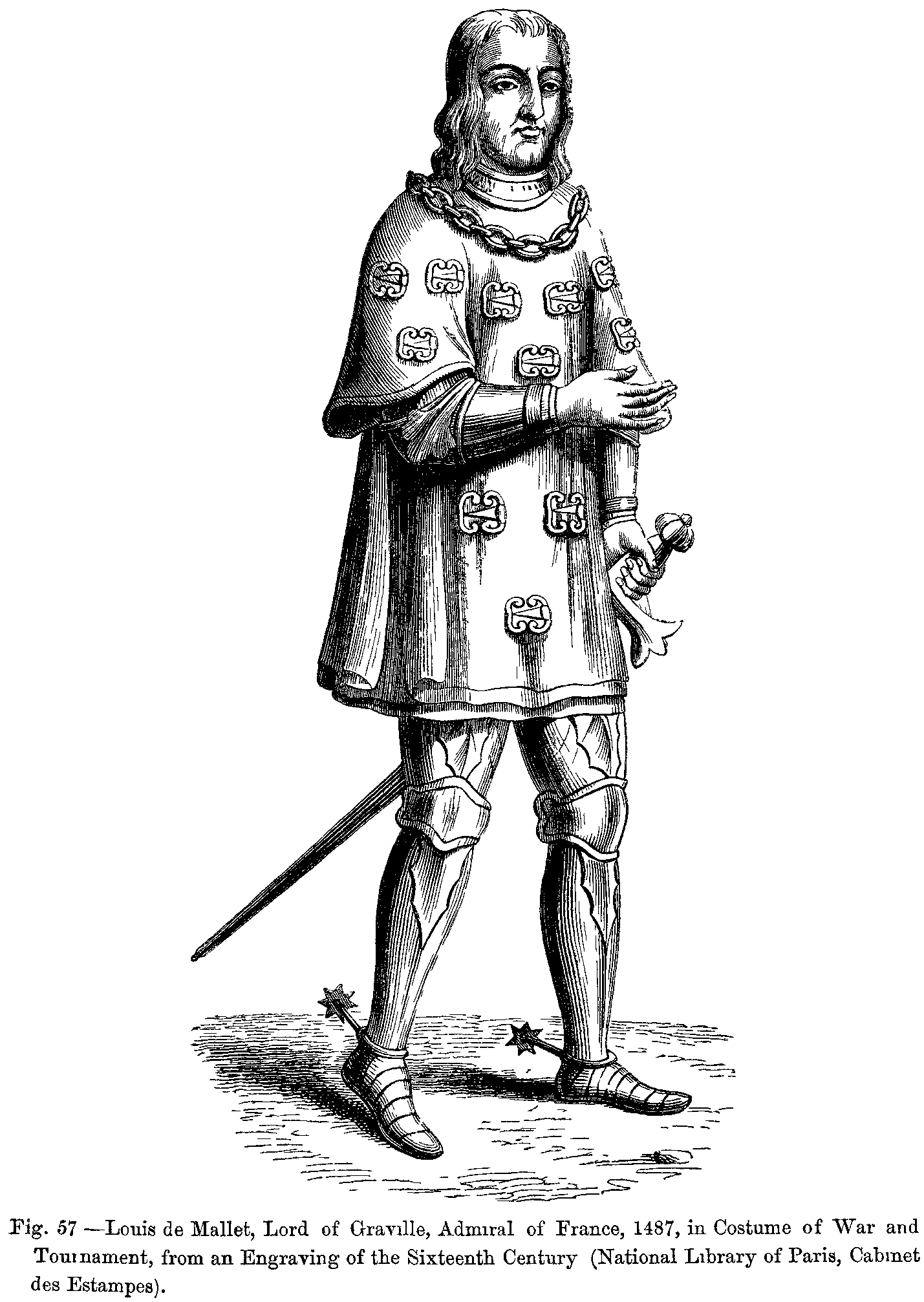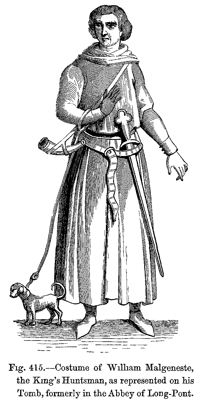Fig. 415.--Costume of William Malgeneste, the King's Huntsman, as represented on his Tomb, formerly in the Abbey of Long-Pont.