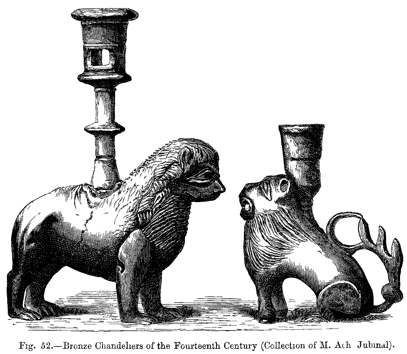 Fig. 421.--Costumes of a young Nobleman and of a Bourgeois in the Fourteenth Century.--From a painted Window in the Church of Saint-Ouen at Rouen, and from a Window at Moulins (Bourbonnais).