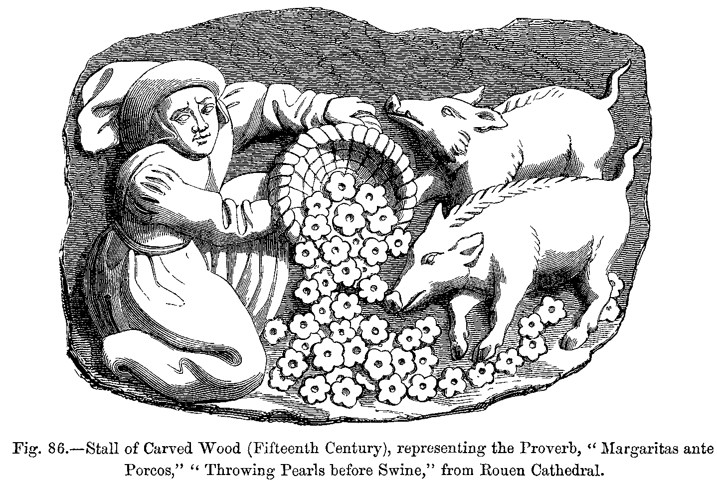 "There were two kinds of mantles; one was open in front, and fell over the back, and a strap which crossed the chest held it fixed on the shoulders; the other, enveloping the body like a bell, was slit up on the right side, and was thrown back over the left arm; it was made with a fur collar, cut in the shape of a tippet. This last has been handed down to us, and is worn by our judges under the name of toge and épitoge.