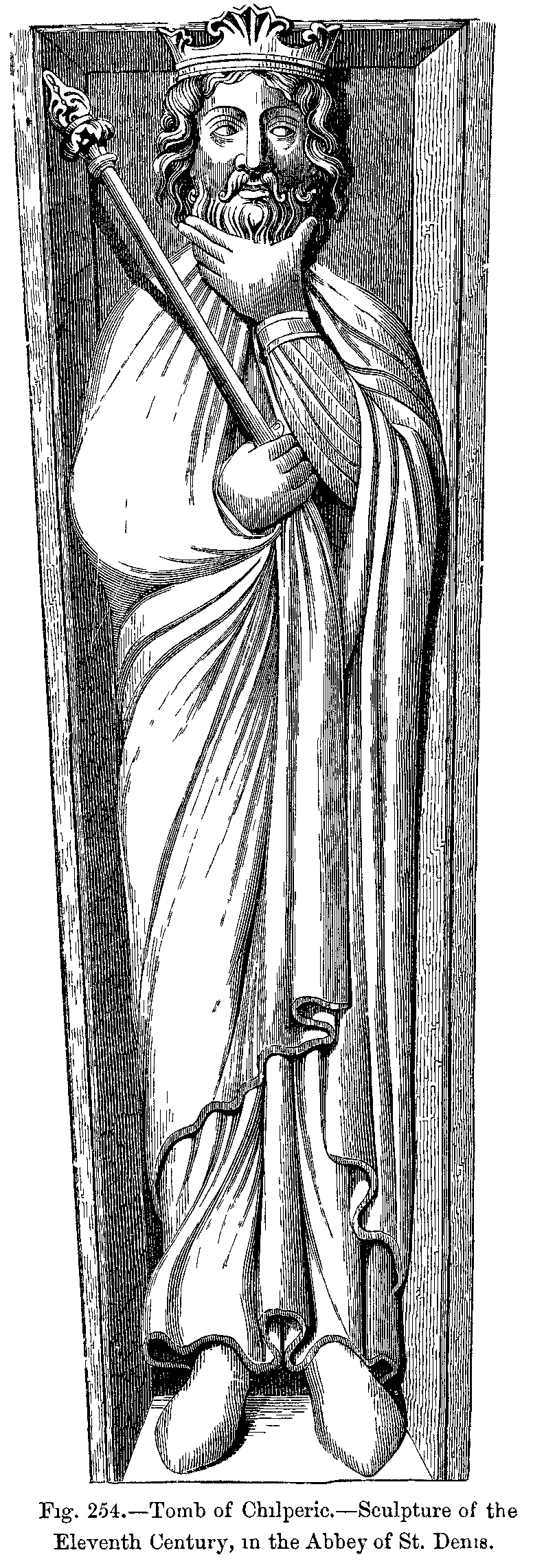 Fig. 403.--Costume of King Childebert (Seventh Century).--From a Statue formerly placed in the Refectory of the Abbey of St. Germain-des-Prés.