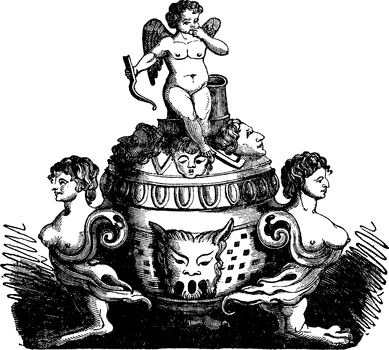The INKSTAND is of bronze, and its singular device is said to refer to the Poet's amorous caution. In his Life,2 we are told that "The amours of Ariosto are a difficult theme for both his eulogists and his biographers. He has alluded in his Poems to several ladies with whose charms he was captivated, but, with the exception of Alessandra and Genevra, the names under which they are mentioned are fictitious. His caution in this respect is thought to have been hinted at in the device placed on his favourite inkstand, and which consisted of a little Cupid having his forefinger on his lip in token of secresy." The evidence in proof of Alessandra's being his wife is little short of unanswerable.