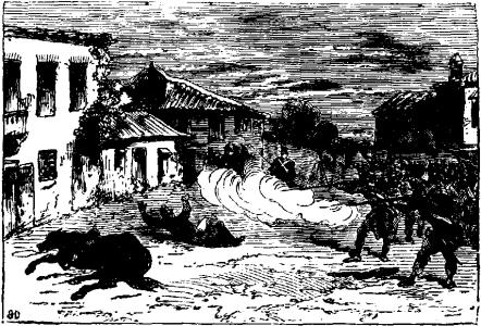 La fusillade petilla bientôt partout et la canonnade, qui ne tarda pas à s'y joindre, donna à tous ces engagements partiels les proportions d'une vraie bataille. Mais c'était surtout aux abords du Palazzo-Reale que le combat était le plus vif.