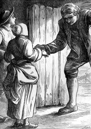 "I think," said the nobleman, rising and laying down the oyster, "I ought to know something more definite about your antecedents before succouring you. If you couldn't agree with your mistress, you are probably no better than you should be."
