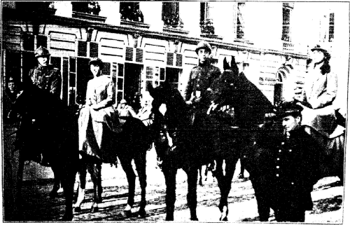 Ces cris des enfants, se répercutant dans la rue, attirèrent la foule; en peu d'instants, une centaine de personnes se trouvèrent assemblées, les vieillards enlevaient leurs chapeaux, et les enfants criaient toujours: "Vive la reine Elisabeth!" Je la suivis quelques minutes jusqu'à sa rentrée au Palais, place de Meir, et tout le long du parcours, c'était le même cri: "Vive la reine Elisabeth!" La petite reine saluait gentiment, et souriait gracieusement.