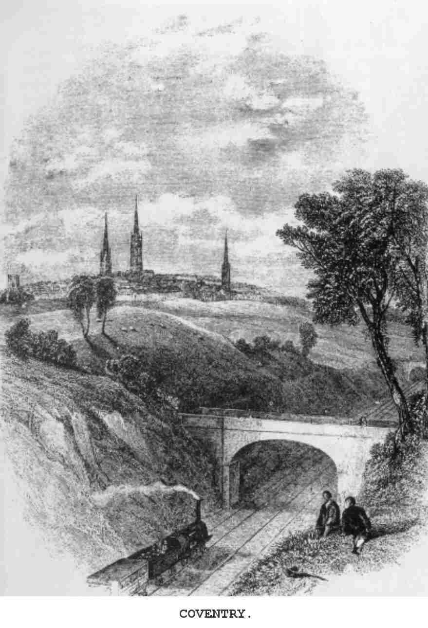 The Buckinghamshire lines from Bletchley open the way through Oxford to all the Western counties, only interrupted by the break of gauge. The Northampton and Peterborough, from Blisworth, proceeds to the Eastern coast of Norfolk and Lincoln. At Rugby commences one of several roads to the North, either by Leicester, Nottingham, and Lincoln, or by Derby and Sheffield; and at Rugby, too, we may either proceed to Stafford by the direct route of the Trent Valley, a line which is rendered classical by the memory of Sir Robert Peel, who turned its first sod with a silver spade and honoured its opening by a celebrated speech; or we may select the old original line through Coventry, Birmingham, and Wolverhampton, passing through a network of little railways leading to Warwick and Leamington, the result of unprofitable competition. A continuation of the Trent Valley line intersects the Pottery district, where the cheapest Delft and the most exquisite specimens of China ware are produced with equal success; and thus we reach Liverpool and Manchester by the straightest possible line.