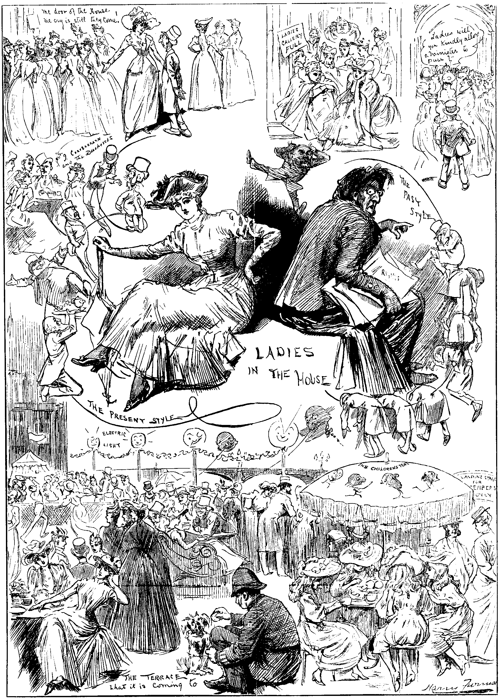 Later, TIM HEALY turned up, TIM TRUCULENT no more. Where was the excited crowd he was wont to address in Sessions of not very long ago—the jeering Ministerialists, the applauding Liberals, the enthusiastic band of united Irishmen, with PARNELL sitting placid in their midst, he only quiet amid the turbulent throng? Now the House more than half empty; the audience irresponsive; Prince ARTHUR sitting solitary on Treasury Bench with head bowed to hide the blushes that had mantled his cheek at hearing TIM extol his improvement since, in 1887, he tried his prentice hand as Chief Secretary. Prince ARTHUR, when he rises, is careful not to introduce a [pg 60] discordant note. He has, he says, listened with interest to the able speech of the Hon. and learned Gentleman, the Member for North Longford. There must be a division for decency's sake; but only 150 Members turn up, and no one would have been greatly surprised if Prince ARTHUR and TIM HEALY had walked off arm in arm into the same lobby.