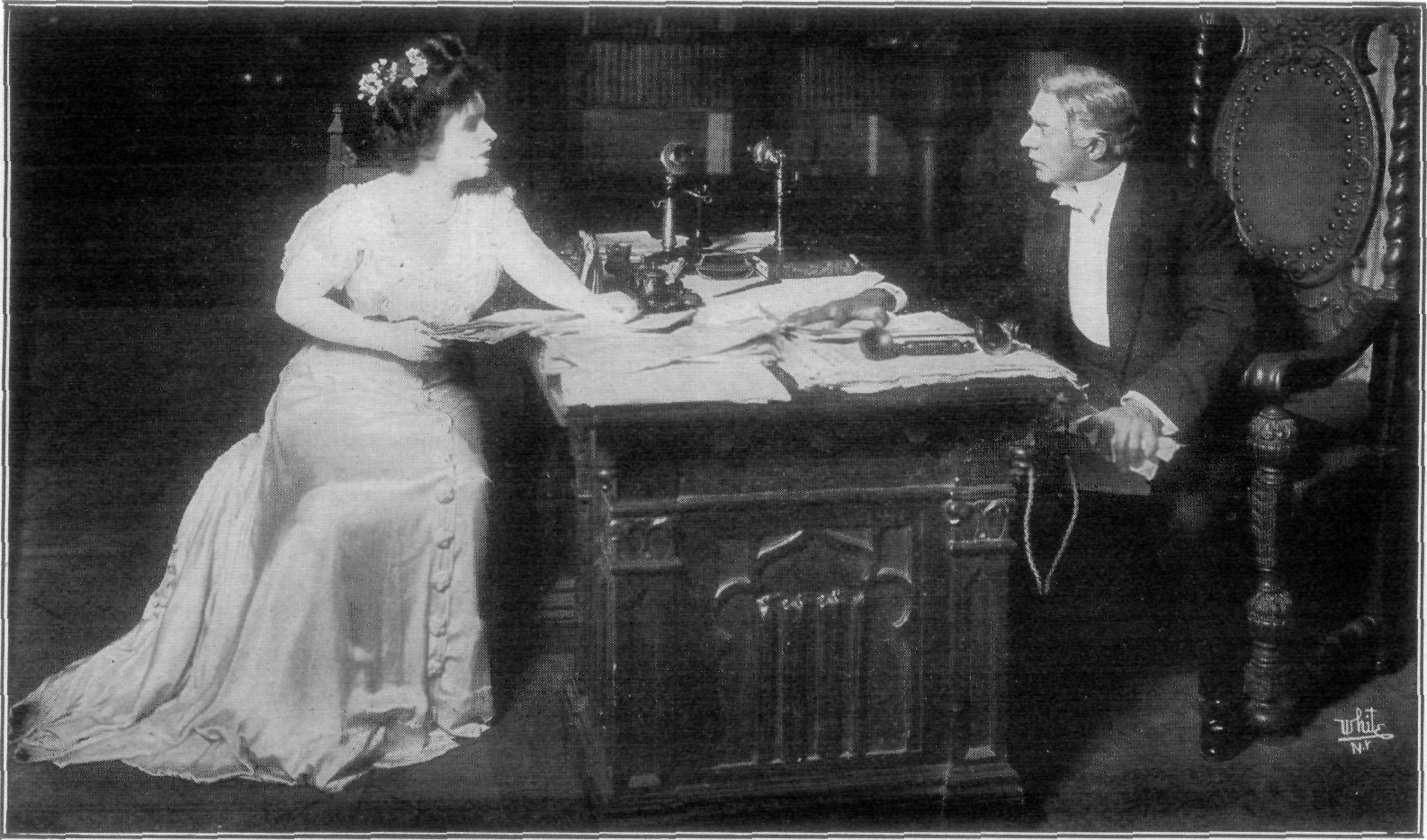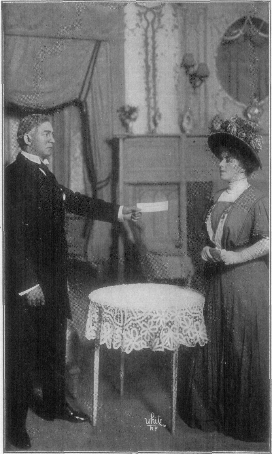 “Now, don't moralize,” replied his father testily, “as if your own selfishness in desiring to possess that girl wasn't the mainspring of all your actions!” Waving his son out of the room he added: “Now leave me alone with her for a few moments. Perhaps I can make her listen to reason.”