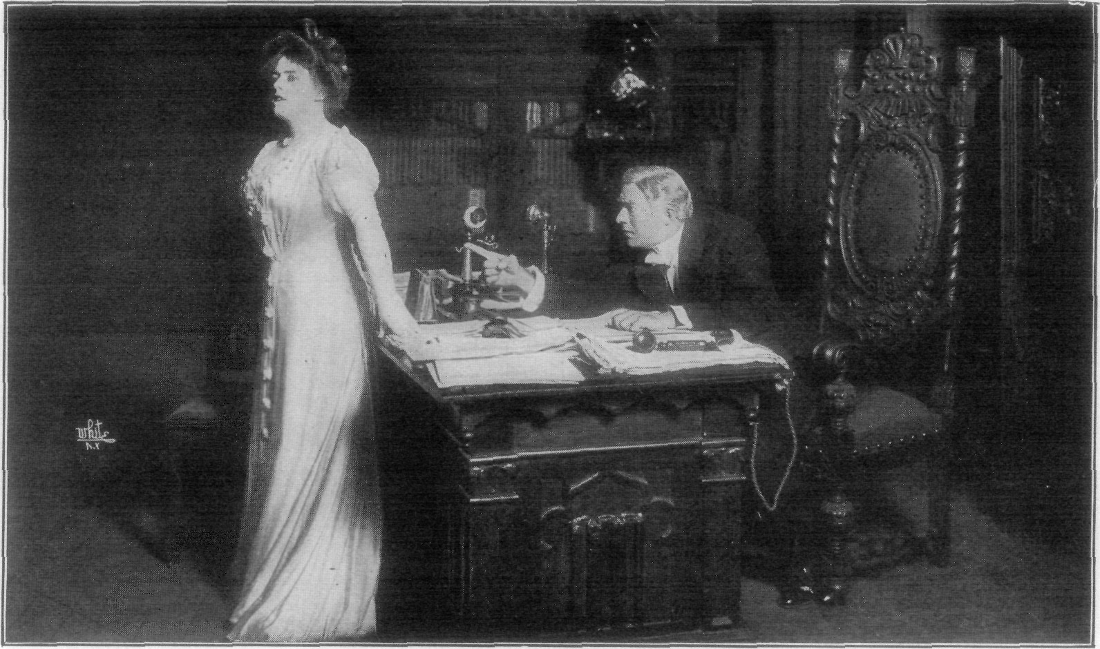 Through the open windows the hoarse shouting of news-venders, the rushing of elevated trains, the clanging of street cars, with the occasional feverish dash of an ambulance—all these familiar noises of a great city had the far-away sound peculiar to top floors of the modern sky-scraper. The day was warm and sticky, as is not uncommon in early May, and the overcast sky and a distant rumbling of thunder promised rain before night.