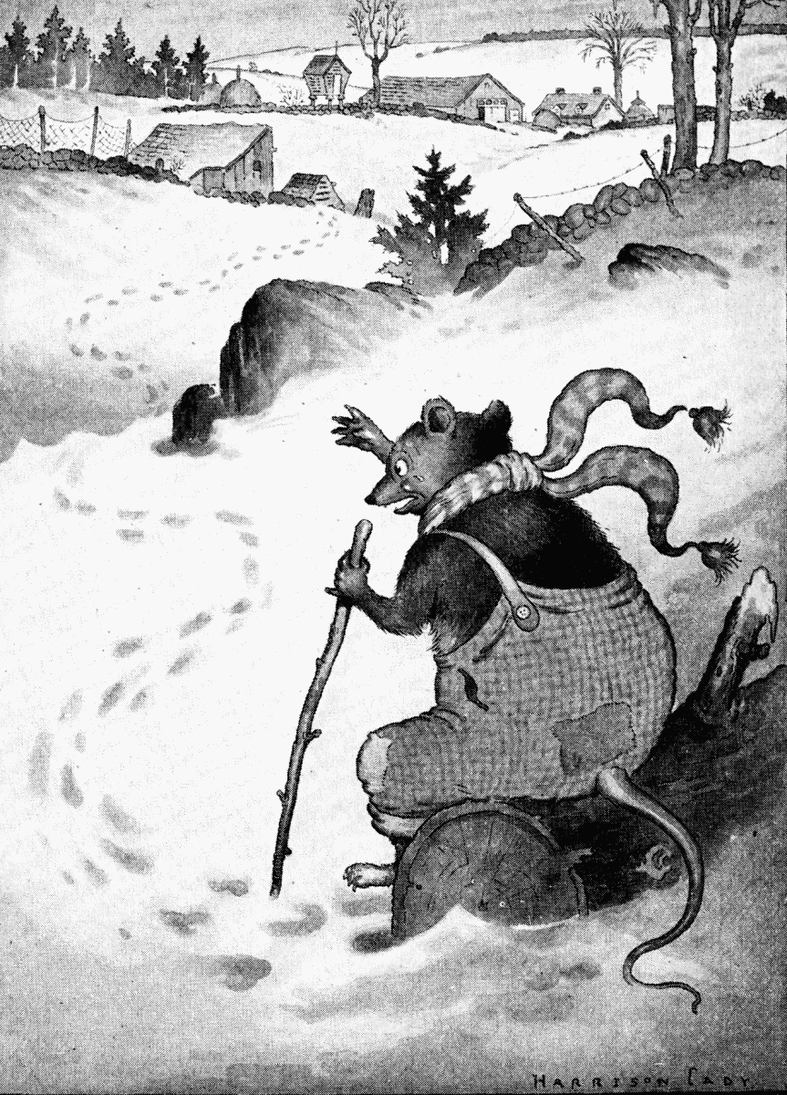 Happy Jack chuckled as he started back to tell Unc' Billy Possum. He knew perfectly well that old Mrs. Possum didn't mean what she said. He knew that Unc' Billy would know that she didn't mean it. But he knew, and he knew that Unc' Billy knew, that when he did get home, he would get a great scolding. Then all of a sudden Happy Jack thought of a way for Unc' Billy to get home without waiting until the snow melted away. That might be a very long time, for there was a great deal of snow on the ground.