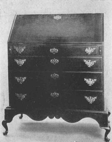 The Hancock desk was a design greatly favored in America in the eighteenth century. This fine example dates from about 1750.