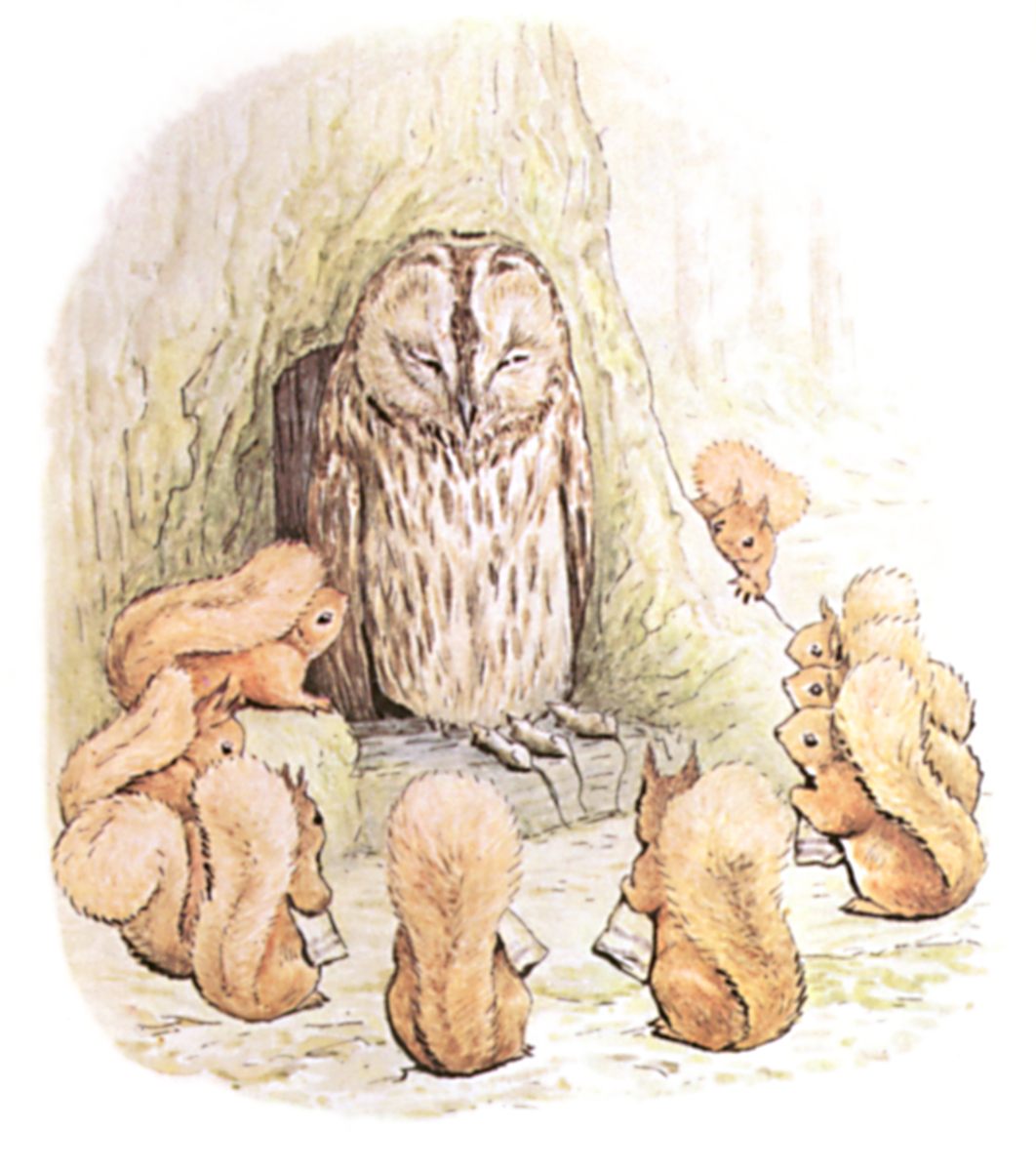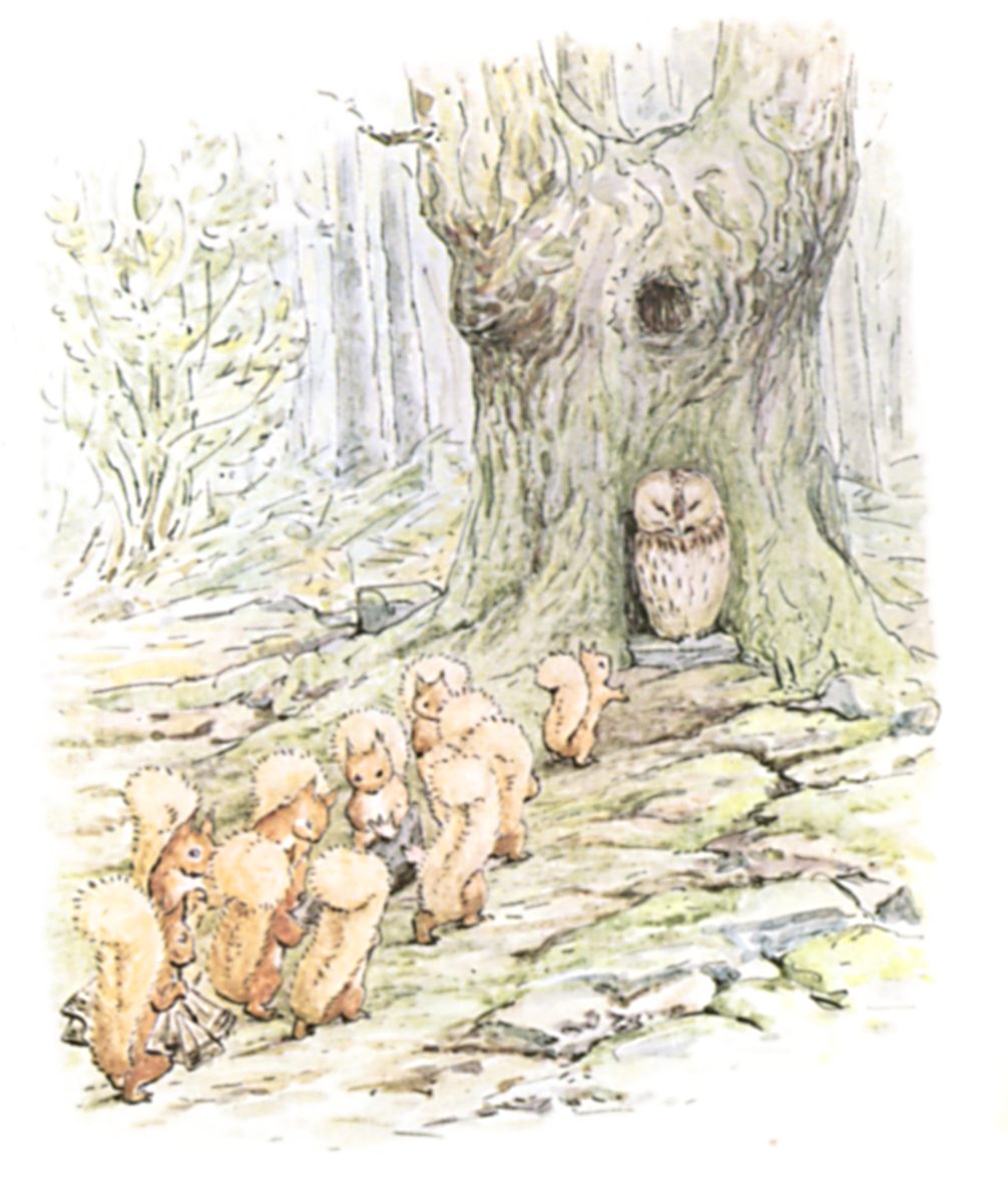 And to this day, if you meet Nutkin up a tree and ask him a riddle, he will throw sticks at you, and stamp his feet and scold, and shout—