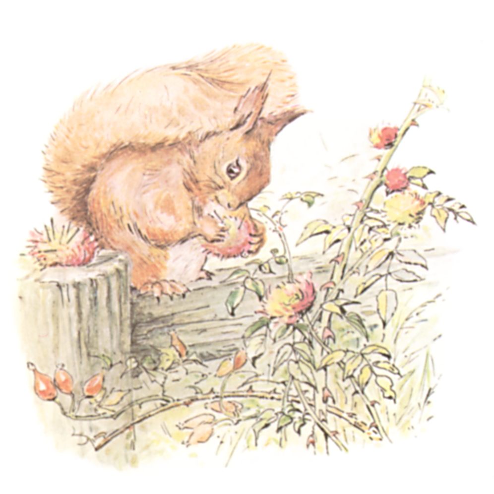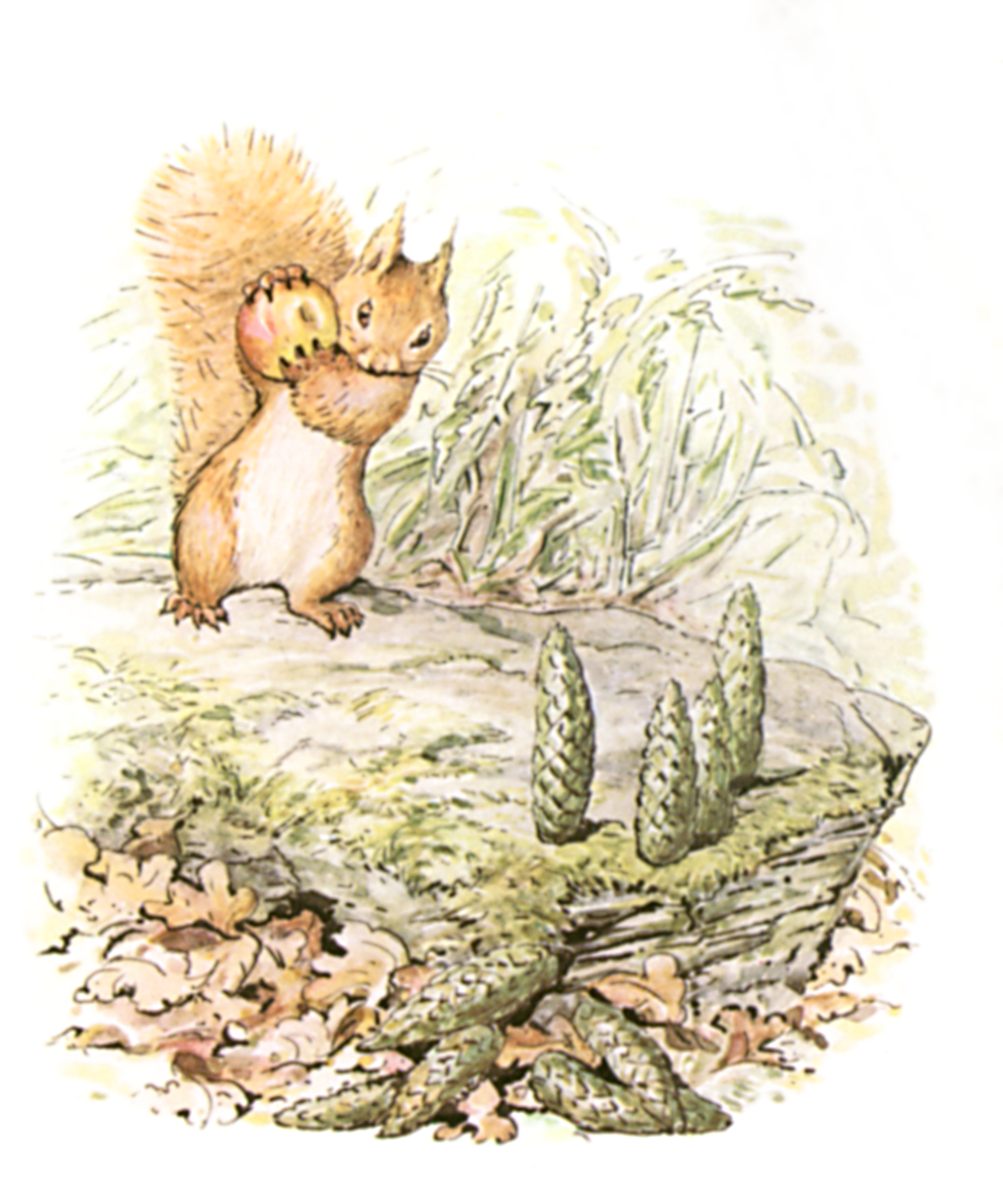 This is a Tale about a tail—a tail that belonged to a little red squirrel, and his name was Nutkin.