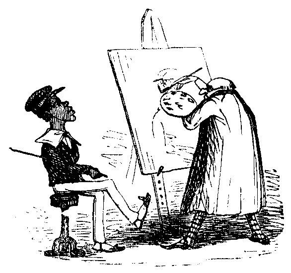 Whilst these in-door remedial appliances were in progress, Agamemnon was hurrying about in a hack cab to discover a designer in chalk, and at length was fortunate enough to secure the “own artist” of the celebrated “Crown and Anchor.” Mr. Smear was a shrewd man, as well as an excellent artist; and when he perceived the very peculiar position of things, he forcibly enumerated all the difficulties which presented themselves, and which could only be surmounted by a large increase of remuneration.