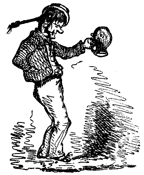 “Wedgetable wendors and purweyors of promiscus poulte-ry, it isn’t often that a cheer is taken in this room for no other than harmonic meetings or club-nights, and it is, therefore, with oncommon pride that I feels myself in my present proud persition. (Werry good! and Hear, hear!) You are all pretty well aware of my familiar acquaintance with the nobs of this here great nation. (We is! and cheers.) For some years I’ve had the honour to collect for Mr. Dark, night and day, I may say; and in my mind the werry best standard of a real gentleman is his dust-hole. (Hear, hear! and He’s vide avake!) You’re hailed,” continued the eloquent Adam, “you’re hailed by a sarvant in a dimity jacket; you pulls up alongside of the curb; you collars your basket, and with your shovel in your mawley, makes a cast into the hairy; one glance at the dust conwinces you vether you’re to have sixpence or a swig of lamen-table beer. (It does! and cheers.) A man as sifteses his dust is a disgrace to humanity! (Immense cheering, which was rendered more exhilarating by the introduction of Dirk’s dangle-dangles, otherwise bells.) But you’ll say, Vot is this here to do with Sir Eddard? I’ll tell you. It has been my werry great happiness to clear out Sir Eddard, and werry well I was paid for doing it. The Tories knows what jobs is, and pays according-ly. (Here the Meeting gave the Conservative Costermonger fire.) The ’pinion I then formed of Sir Eddard has jist been werrified, for hasn’t he comed forrard to oppose them rascally taxes on commercial industry and Fairlop-fair—on enterprising higgling and ‘twelve in a tax-cart?’ need I say I alludes to them blessed ‘pikes? (Long and continued cheers.) Sir Eddard is fully aware that the ‘pike-men didn’t make the dirt that makes the road, and werry justly refuses to fork out tuppence-ha’penny! It’s werry true Sir Eddard says that the t’other taxes must be paid, as what’s to pay the ministers? But it’s highly unreasonable that ’pike-men is to be put alongside of Prime Ministers, wedgetable wendors, and purveyors of promiscus polte-ry! Had that great man succeeded in bilking the toll, what a thing it would ha’ been for us! Gatter is but 3d. a pot, and that’s the price of a reasonable ‘pike-ticket. That wenerable and wenerated liquor as bears the cognominum of ‘Old Tom’ is come-atable for the walley of them werry browns. But Sir Eddard has failed in his bould endeavour—the ’pikes has it! (Shame!) It’s for us to reward him. I therefore proposes that a collection of turnpike tickets is made, and then elegantly mounted, framed and glaziered, and presented to the Right Honourable Barrownight.” (Immense applause.)