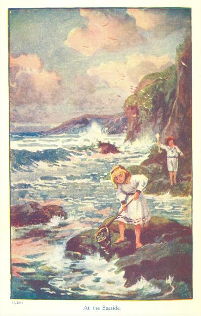 And out on the beach things went swimmingly. They made sand castles and moats, and the rising tide flowed in just as they wished it to. Like another Canute, Tom flung defiance to the waves, and shouted himself hoarse; and then, to his immense surprise, the little ripples swept smoothly back, and left a crumbled castle, and white foamy ridges that looked like soap.