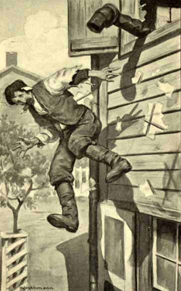 About this time a brick came through the window with a splintering crash, and gave me a considerable of a jolt in the back. I moved out of range—I began to feel in the way.