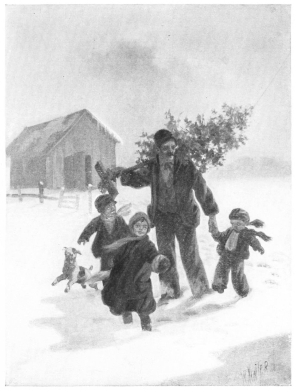 We go nen to the old woodshed— All bundled up, through the deep snow— "An' snowin' yet, jee-rooshy-O!" Uncle he said, an' he'p us wade |