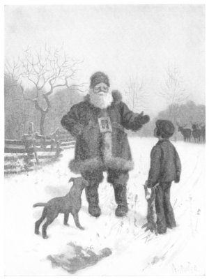 Nen Uncle grabs th' old overcoat An' flops it over Santy's head, An' swing the door wide back an' said, "Come out, old man!—an' quick about It!—I've ist got to put you out!" An' out he sprawled him in the snow— "Now roll!" he says—"Hi-roll-ee-O!"— An' Santy, sputter'n' "Ouch! Gee-whiz!" Ist roll an' roll fer all they is! An' Trip he's out there, too,—I know, 'Cause I could hear him yappin' so— An' I heerd Santy, wunst er twic't, |