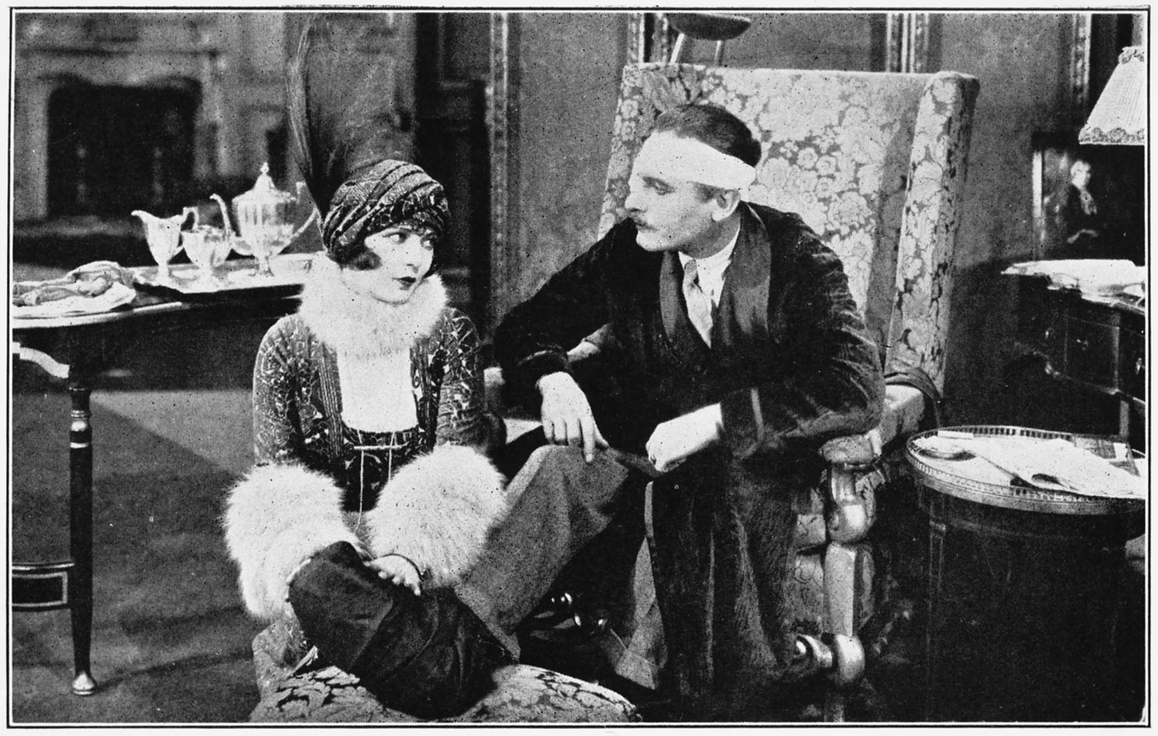When they had departed, promising to return very soon—to dinner this time, and see all the "exquisite appartement," Burton came into the room to take away the tea things. His face was a mask as he swept up the cigarette ash, which had fallen upon the William and Mary English lac table, which holds the big lamp, then he carefully carried away the silver ash trays filled with the ends, and returned with them cleaned. Then he coughed slightly.