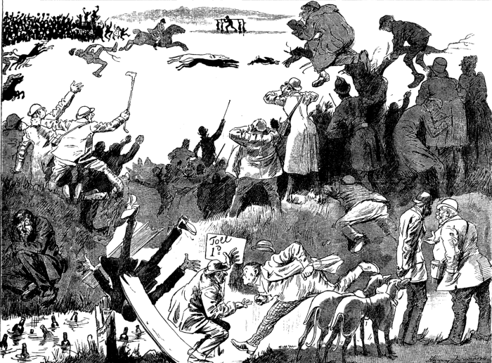 First Sp. My dear fellow, I don't agree with you a bit. In the first place, as to driving—driven birds are fifty times more difficult; and what's the use of wasting time with setters or pointers in ordinary root-fields. It's all sentiment.