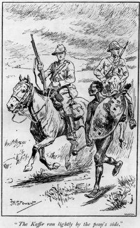 “Hullo!” he cried, “flute and hautboy. I say, Sim, put that thing away and don’t bring it here, or I shall have an accident with it some day. You ought to have stopped him, Noll. But come out, both of you. There’s some fun in the compound. They’re going to thoroughly search half-a-dozen Kaffirs, and I thought you’d like to see.”