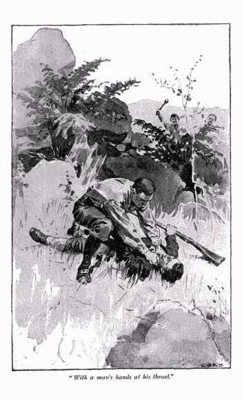 “Let him alone!” he cried hoarsely; and the fierce thrust he gave sent the young tyrant into a sitting position upon a cushion-like tuft rising from the closely cropped grass.