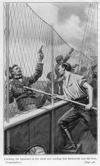“Use your eyes, Burnett, my lad,” whispered the lieutenant, bending down. “We must have been close up to her when that idiot gave the alarm. See anything?”