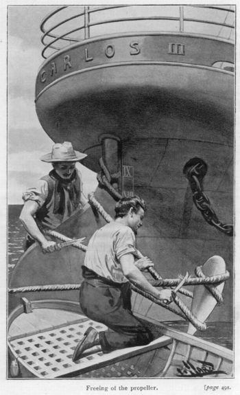 “Thought he was going to snap my head off,” he mattered, as he began to walk up and down, noticing sundry little preparations that were in progress in connection with one of the quarter-boats, in which, as she swung from the davits, a couple of the smart, barefooted sailors, whose toes looked very pink in the chill air, were overhauling and re-arranging oars, and the little mast, yard and sail, none of which needed touching, for everything was already in naval apple-pie order.