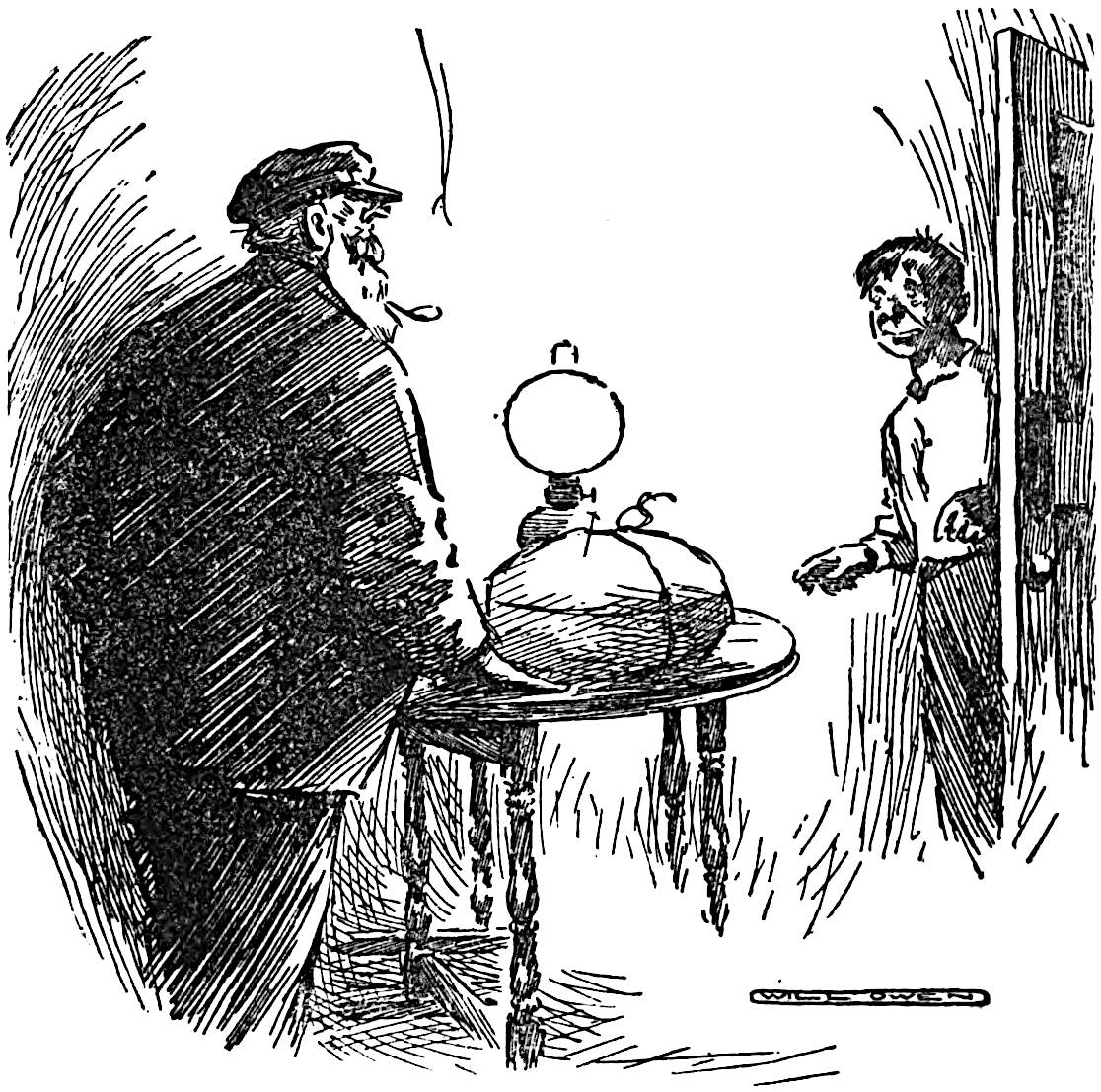 “I’m keeping house this evening,” said the captain, “or else I should have been.”