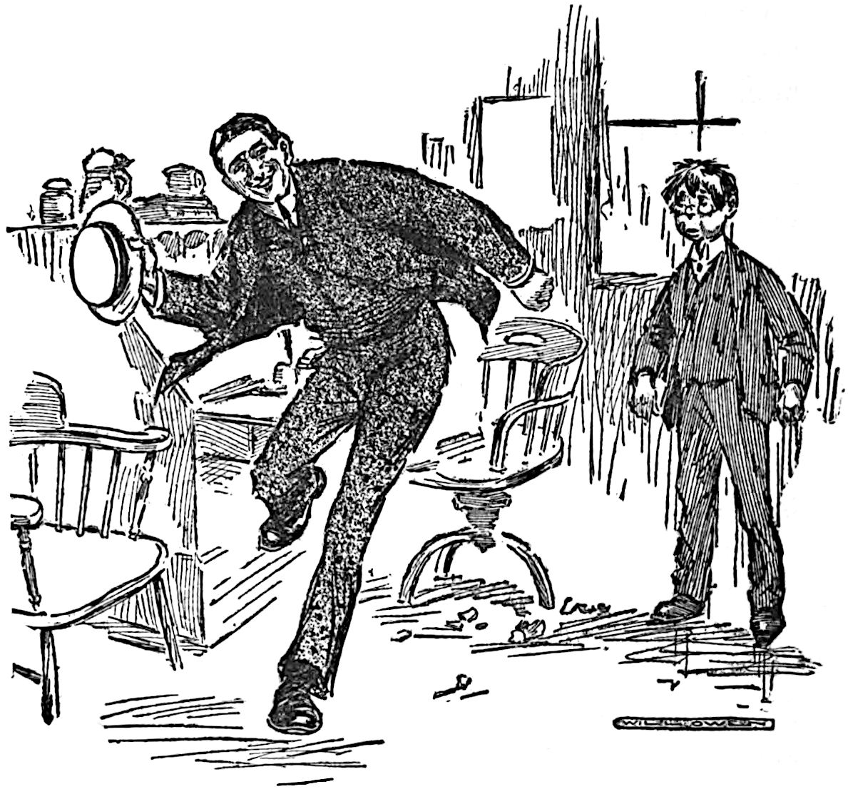 “If you say another word,” declared Mr. Walters, in grating accents, “I’ll take you by the scruff of your little neck and drop you in the river. And if you tell any more lies about my young woman to a living soul I’ll tear you limb from limb, and box your ears arterwards.”