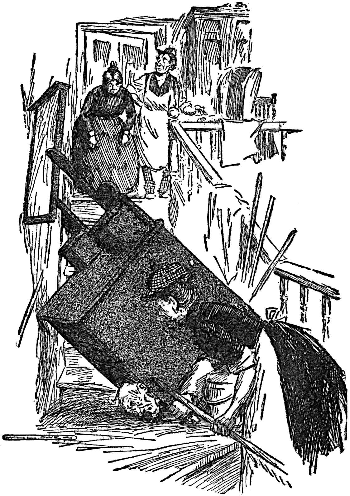 “Ask him if he didn’t go down on his knees to me in Pringle’s Lane one day—a muddy day—and ask me to be his,” continued the unscrupulous Rosa. “Ask him if he didn’t say I was throwing myself away on a wooden-headed boatswain with bandy legs.”
