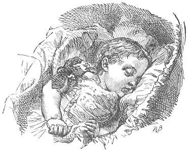 The children took care of her by day, and the lodgers knew nothing about her existence; but at night Martha, the old nurse, went into her nursery and slept with her, and attended to her wants. Peter and Flossy having learned the mystery of amusing the small mite, were p. 18tolerably happy about her during the daytime, but at night they were obliged to be parted from her, and in consequence at night they were full of fears. Martha meant to be kind, but she was tired, and she often slept soundly, and did not hear the baby when she awoke and demanded attention.