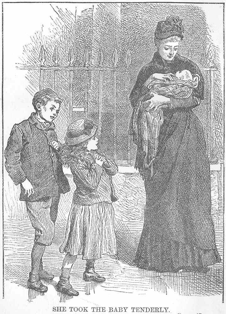 The children bent down, and printed a tender salute on the wee baby’s face, and that night they scarcely slept themselves for fear of disturbing it.