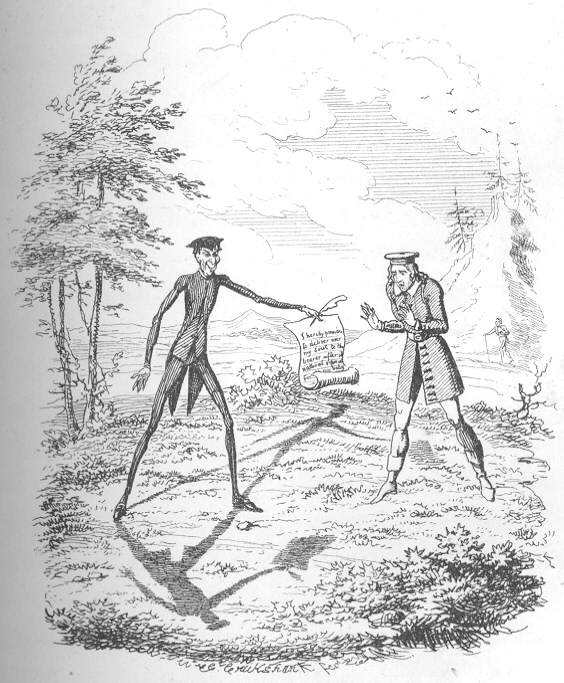 The appearance of the English edition, I have reason to know—thanks to the merit of Cruikshank’s original and felicitous sketches—excited the greatest delight in the mind of Chamisso. In his autobiography he says that “Peter” had been kindly received in Germany, but in England had been renowned (volksthumlich).