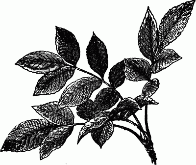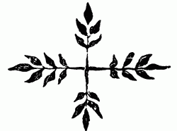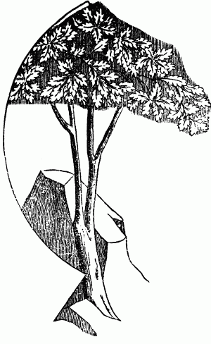 Gather a branch from any of the trees or flowers to which the earth owes its principal beauty. You will find that every one of its leaves is terminated, more or less, in the form of the pointed arch; and to that form owes its grace and character. I will take, for instance, a spray of the tree which so gracefully adorns your Scottish glens and crags—there is no lovelier in the world—the common ash. Here is a sketch of the clusters of leaves which form the extremity of one of its young shoots (fig. 4); and, by the way, it will furnish us with an interesting illustration of another error in modern architectural systems. You know how fond modern architects, like foolish modern politicians, are of their equalities, and similarities; how necessary they think it that each part of a building should be like every other part. Now Nature abhors equality, and similitude, just as much as foolish men love them. You will find that the ends of the shoots of the ash are composed of four[4] green stalks bearing leaves, springing in the form of a cross, if seen from above, as in fig. 5, Plate I., and at first you will suppose the four arms of the cross are equal. But look more closely, and you will find that two opposite arms or stalks have only five leaves each, and the other two have seven; or else, two have seven, and the other two nine; but always one pair of stalks has two leaves more than the other pair. Sometimes the tree gets [11] a little puzzled, and forgets which is to be the longest stalk, and begins with a stem for seven leaves where it should have nine, and then recollects itself at the last minute, and puts on another leaf in a great hurry, and so produces a stalk with eight leaves; but all this care it takes merely to keep itself out of equalities; and all its grace and power of pleasing are owing to its doing so, together with the lovely curves in which its stalks, thus arranged, spring from the main bough. Fig. 5 is a plan of their arrangement merely, but fig. 4 is the way in which you are most likely to see them: and observe, they spring from the stalk precisely as a Gothic vaulted roof springs, each stalk representing a rib of the roof, and the leaves its crossing stones; and the beauty of each of those leaves is altogether owing to its terminating in the Gothic form, the pointed arch. Now do you think you would have liked your ash trees as well, if Nature had taught them Greek, and shown them how to grow according to the received Attic architectural rules of right? I will try you. Here is a cluster of ash leaves, which I have grown expressly for you on Greek principles (fig. 6, Plate III.) How do you like it?