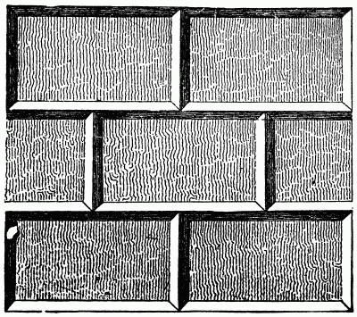 6. You must all, of course, have observed that the principal distinctions between existing styles of architecture depend on their methods of roofing any space, as a window or door for instance, or a space between pillars; that is to say, that the character of Greek architecture, and of all that is derived from it, depends on its roofing a space with a single stone laid from side to side; the character of Roman architecture, and of all derived from it, depends on its roofing spaces with round arches; and the character of Gothic architecture depends on its roofing spaces with pointed arches, or gables. I need not, of course, in any way follow out for you the mode in which the Greek system of architecture is derived from [7] the horizontal lintel; but I ought perhaps to explain, that by Roman architecture I do not mean that spurious condition of temple form which was nothing more than a luscious imitation of the Greek; but I mean that architecture in which the Roman spirit truly manifested itself, the magnificent vaultings of the aqueduct and the bath, and the colossal heaping of the rough stones in the arches of the amphitheater; an architecture full of expression of gigantic power and strength of will, and from which are directly derived all our most impressive early buildings, called, as you know, by various antiquaries, Saxon, Norman, or Romanesque. Now the first point I wish to insist upon is, that the Greek system, considered merely as a piece of construction, is weak and barbarous compared with the two others. For instance, in the case of a large window or door, such as fig. 1, if you have at your disposal a single large and long stone you may indeed roof it in the Greek manner, as you have done here, with comparative security; but it is always expensive to obtain and to raise to their place stones of this large size, and in many places nearly impossible to obtain them at all: and if you have not such stones, and still insist upon roofing the space in the Greek way, that is to say, upon having a square window, you must do it by the miserably feeble adjustment of bricks, fig. 3.[3] You are well aware, of course, that this latter is the usual way in which such windows are now built in England; you are fortunate enough here in the north to be able to obtain single stones, and this circumstance alone gives a considerable degree of grandeur to your buildings. But in all cases, and however built, you cannot but see in a moment that this cross bar is weak and imperfect. It may be strong enough for all immediate intents and purposes, but it is not so strong as it might be: however well the house is built, it will still not stand so long as if it had been better constructed; and there is hardly a day passes but you may see some rent or flaw in bad buildings of this kind. You may see one whenever you choose, in one of your most costly, and most ugly [8] buildings, the great church with the dome, at the end of George Street. I think I never saw a building with a principal entrance so utterly ghastly and oppressive; and it is as weak as it is ghastly. The huge horizontal lintel above the door is already split right through. But you are not aware of a thousandth part of the evil: the pieces of building that you see are all carefully done; it is in the parts that are to be concealed by paint and plaster that the bad building of the day is thoroughly committed. The main mischief lies in the strange devices that are used to support the long horizontal cross beams of our larger apartments and shops, and the framework of unseen walls; girders and ties of cast iron, and props and wedges, and laths nailed and bolted together, on marvelously scientific principles; so scientific, that every now and then, when some tender reparation is undertaken by the unconscious householder, the whole house crashes into a heap of ruin, so total, that the jury which sits on the bodies of the inhabitants cannot tell what has been the matter with it, and returns a dim verdict of accidental death.