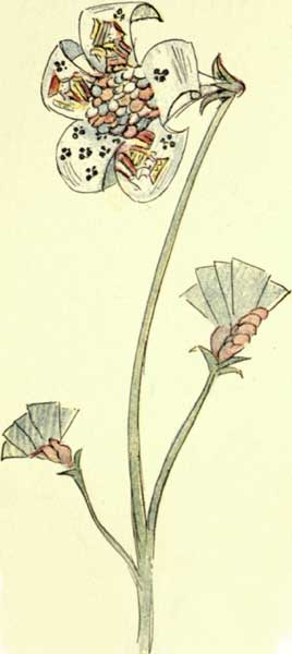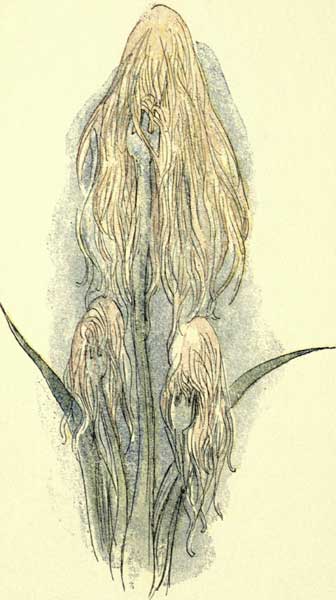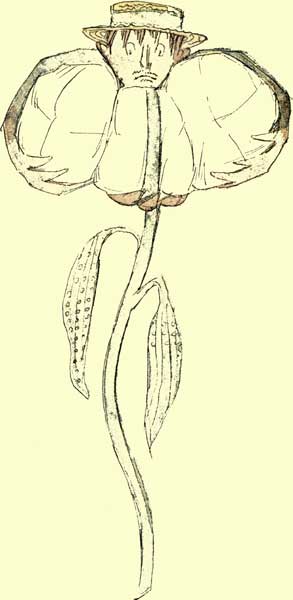 A trailer. Considered unlucky to pick them. Of all the blooming things, these are the most discouraging. From the many descriptions of this plant it seems a sort of Horse Chestnut. Its color and form are bad. Enthusiasts have been known to watch for results for years without one plant showing. Related to the Hope Plant.