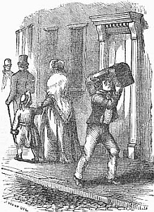 The railway porters, who attend to the business of transferring the passengers thus from the railway carriages to those of the street, are very numerous all along the platform; and they are very civil and attentive to the passengers, especially to those who come in the first-class cars—and more especially still, according to my observation and experience, if the traveller has an agreeable looking lady under his charge. The porters are dressed in a sort of uniform, by which they are readily distinguished from the crowd. They are strictly forbidden to receive any fee or gratuity from the passengers. This prohibition, however, does not prevent their taking very thankfully the shillings or sixpences[A]that are often offered them, particularly by Americans, who, being strangers in the country, and not understanding the customs very