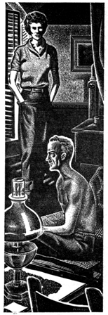 He didn't look like the others, somehow. He was older, for one thing. Perhaps it was his nearly bald scalp, perhaps the thick, bookish glasses in heavy brown frames. "What's that?" he asked mildly, poking a finger at the dealer kneeling in the sawdust on the floor. My Blackout victim was reaching out, trying to find something he could use to raise himself to his feet. His face was frozen in a fierce, unseeing stare as he mentally screamed at his eyes to see, see, see!