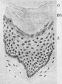 Um den Mißdeutungen aus dem Wege zu gehen, die mit der Tatsache verknüpft werden können, daß die Einzelligen unsterblich sind,[30] müssen wir also streng festhalten, was wir unter Unsterblichkeit verstehen. Unsterblichkeit bedeutet für uns nur, daß im normalen Entwicklungsgang einer Zelle keine Leiche entsteht. Die lebendige Substanz ist unsterblich nur soweit, als man unter Tod die Bildung einer Leiche versteht, einer Zelle, deren Stoffwechsel unwiderruflich erloschen ist.