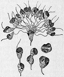Das war Metschnikoffs Losung im Kampfe gegen Gevatter Tod:[14] nicht mit Lanze und Speer zog er aus in den Kampf, sondern mit einem Troß von Bazillen gegen Bazillen.
