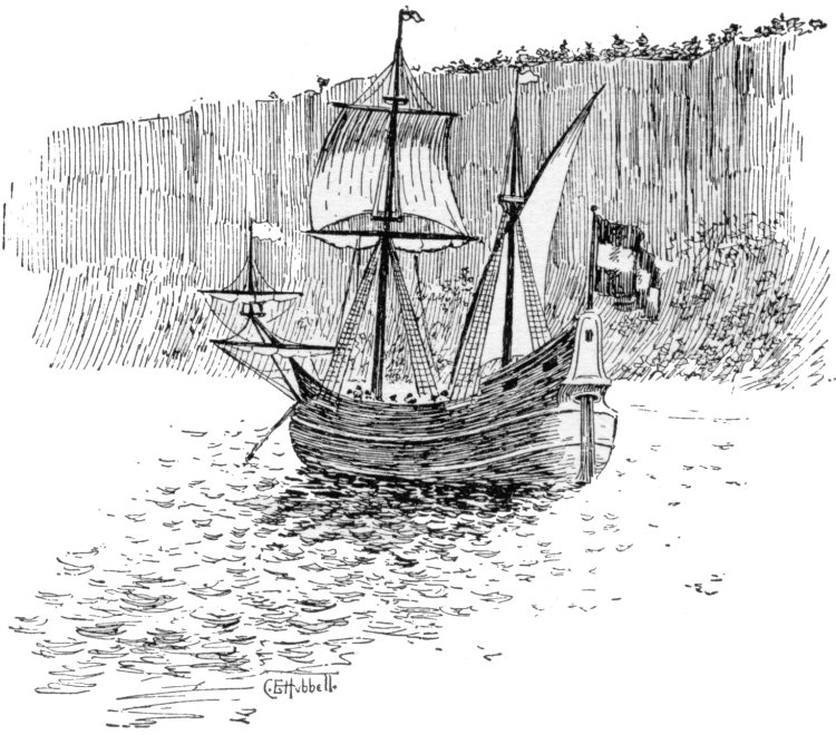 [Pg 20]The dress of some of these visitors was a surprise to De Vries and his men, of whom there were only seven on the yacht. It was winter time, and most of the Indians were arrayed in furs, but several of them wore jackets made in the English fashion. The visitors were very friendly, and urged De Vries to sail his vessel up a stream, now known as Big Timber Creek, which, they declared, was a much better place for trading.