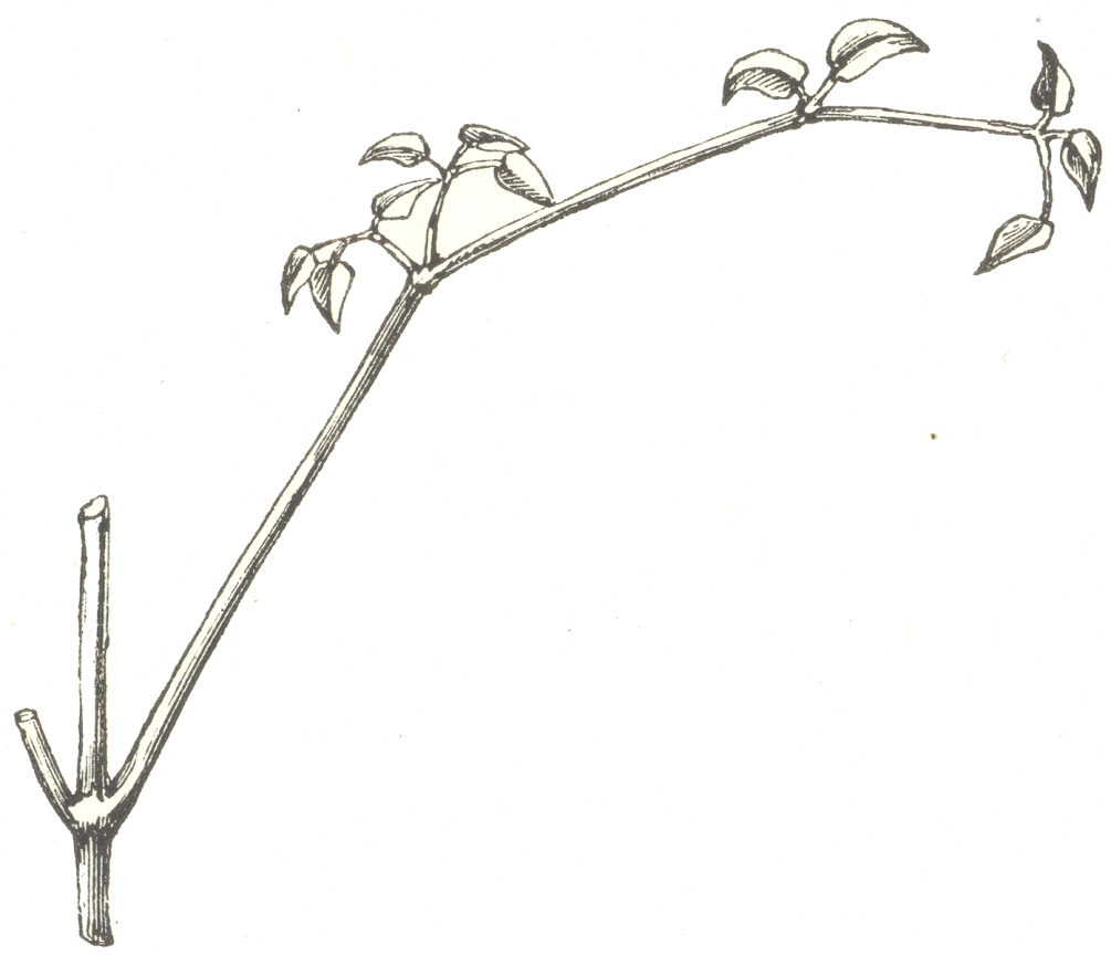 The leaves of different twining-plants are arranged on the stem (before it has twined) alternately, or oppositely, or in a spire. In the latter case the line of insertion of the leaves and the course of the revolutions coincide. This fact has been well shown by Dutrochet, [19] who found different individuals of Solanum dulcamara twining in opposite directions, and these had their leaves in each case spirally arranged in the same direction. A dense whorl of many leaves would apparently be incommodious for a twining plant, and some authors assert that none have their leaves thus arranged; but a twining Siphomeris has whorls of three leaves.