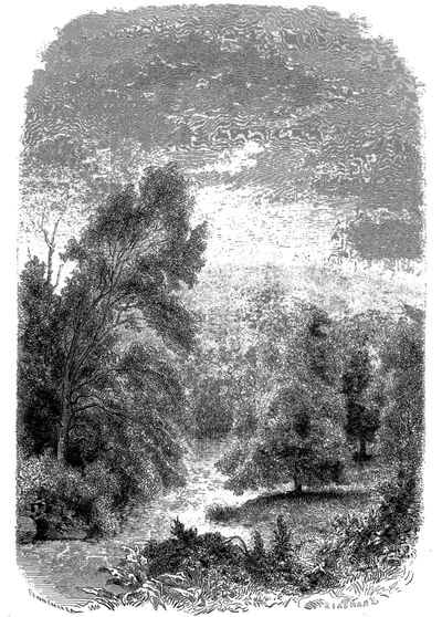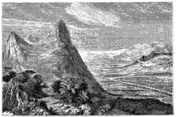 Une course au sommet d'une des premières collines des terres d'Ava nous procure une vue magnifique de la contrée et du cours du fleuve. Dans le lointain nous n'apercevons pas de villages, mais des routes se dirigeant vers l'intérieur, et de temps à autre apparaissent quelques-uns de ces chariots indigènes (neat) qu'entraînent de leur trot rapide des bœufs rouges, vigoureux et en parfait état.