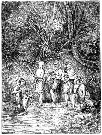 Arrivée à Kazeh. — Accueil hospitalier. — Snay ben Amir. — Établissements des Arabes. — Leur manière de vivre. — Le Tembé. — Chemins de l'Afrique orientale. — Caravanes. — Porteurs. — Une journée de marche. — Costume du guide. — Le Mganga. — Coiffures. — Halte. — Danse. — Séjour à Kazeh. — Avidité des Béloutchis. — Saison pluvieuse. — Yombo. — Coucher du soleil. — Jolies fumeuses. — Le Mséné. — Orgies. — Kajjanjéri. — Maladie. — Passage du Malagarazi. — Tradition. — Beauté de la Terre de la Lune. — Soirée de printemps. — Orage. — Faune. — Cynocéphales, chiens sauvages, oiseaux d'eau. — Ouakimbou. — Ouanyamouézi. — Toilette. — Naissances. — Éducation. — Funérailles. — Mobilier. — Lieu public. — Gouvernement. — Ordalie. — Région insalubre et féconde. — Aspect du Tanganyika. — Ravissements. — Kaouélé./p>