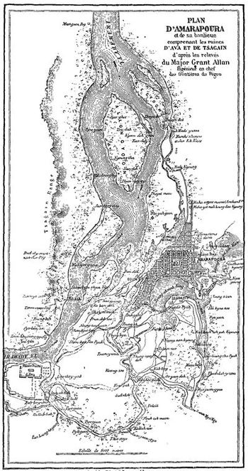 Le 1er août, au point du jour, toute l'ambassade, portée sur les bateaux plats le Sutlege et le Panlang, remorqués par le Bentinck et le Nerbudda, quitta cette ville et gagna le bras principal de l'Irawady.
