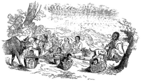 Les terres, bien qu'imparfaitement labourées, étaient proprement tenues et leurs sillons plus réguliers que dans la plupart de nos champs de l'Inde. Ce mode de culture n'en excita pas moins le mépris d'un robuste Hindoustan du Doab, zémindar dans notre cavalerie irrégulière. «C'est à Dieu et non pas à leur travail qu'ils doivent leur nourriture,» disait-il. Les paysans se plaignaient beaucoup de la sécheresse; ils n'avaient pas récolté de riz depuis plusieurs années, et n'espéraient pas même une récolte cette année encore.