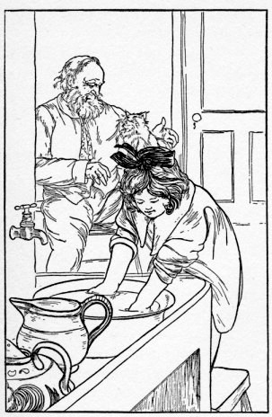 The little girl kicked at the stones a few minutes; then she looked up. No one was looking at her, so she reached out one little hand and picked up a crust of bread.
