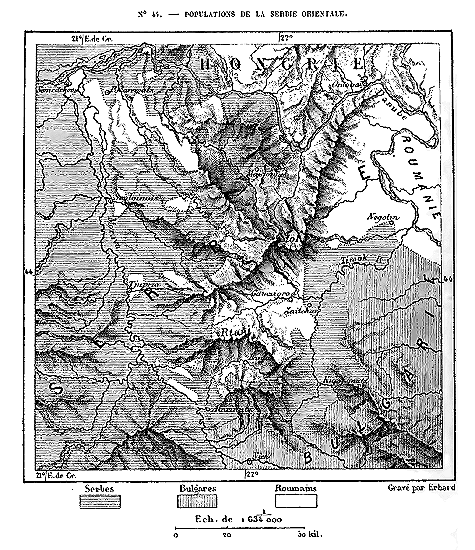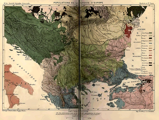 Sans tenir compte des groupes de population d'une importance secondaire, ni des races dont les représentants n'existent pas en corps de nation, on peut dire, d'une manière générale, que l'Europe se partage en trois grands domaines ethniques, ayant précisément pour limites communes ou pour bornes angulaires les massifs des Alpes, des Carpathes, des Balkhans. Ces montagnes, qui séparent les bassins fluviaux et servent de barrière entre les climats, devaient aussi régir en partie la distribution des races.